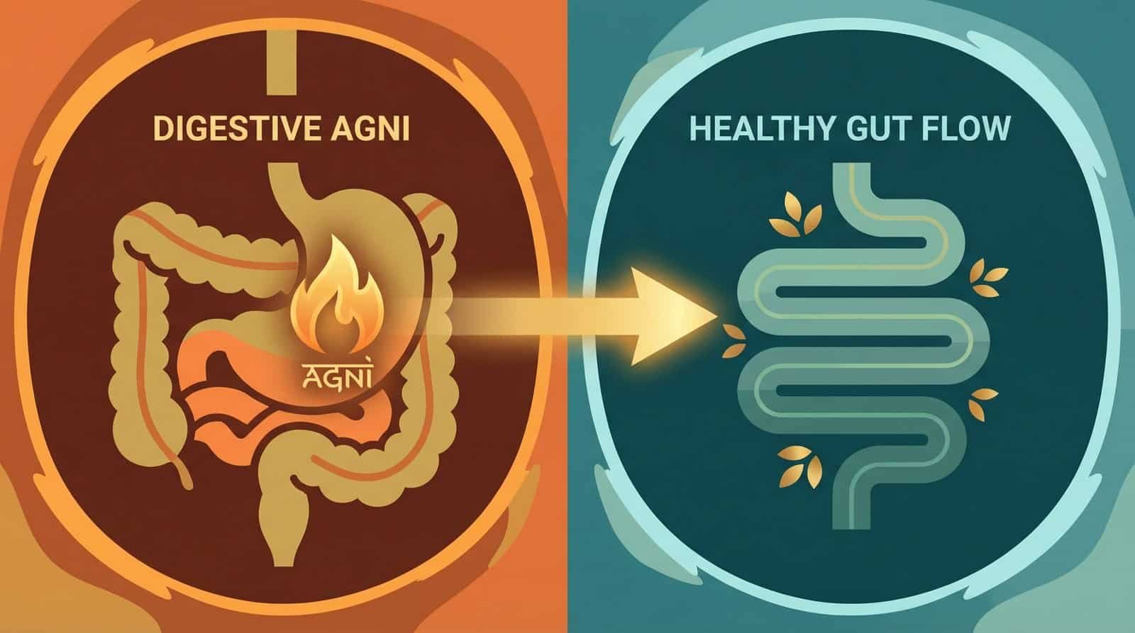 Ayurvedic concept diagram of Mandagni (digestive fire) illustrating how can piles be cured without surgery permanently by fixing gut health.